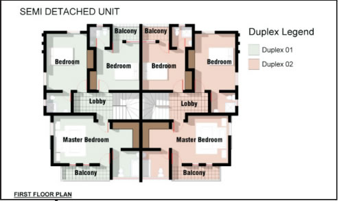 This a twin - duplex structural design: having 2 units of 4 - Bedroom Duplex within the structure. This offers a unique architectural design for all related property units, situated on specially mapped out areas within the estate. The land size for each unit of the 4-bedroom semi - detached property is 300 square meter: with a dedicated mapped out car park section that can concurrently accomodate 3 cars.